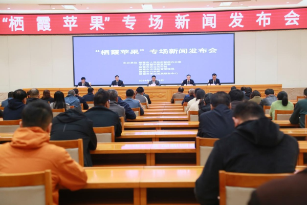 10月26日上午,棲霞市人民政府新聞辦公室舉行“蘋果專題”新聞發布會。棲霞市農業農村局、果業發展服務中心、市場監督和管理局、公安局主要負責人分別就棲霞蘋果產業發展、維護棲霞蘋果品牌以及保障蘋果交易秩序等方面進行新聞發布,并回答記者朋友們的提問。