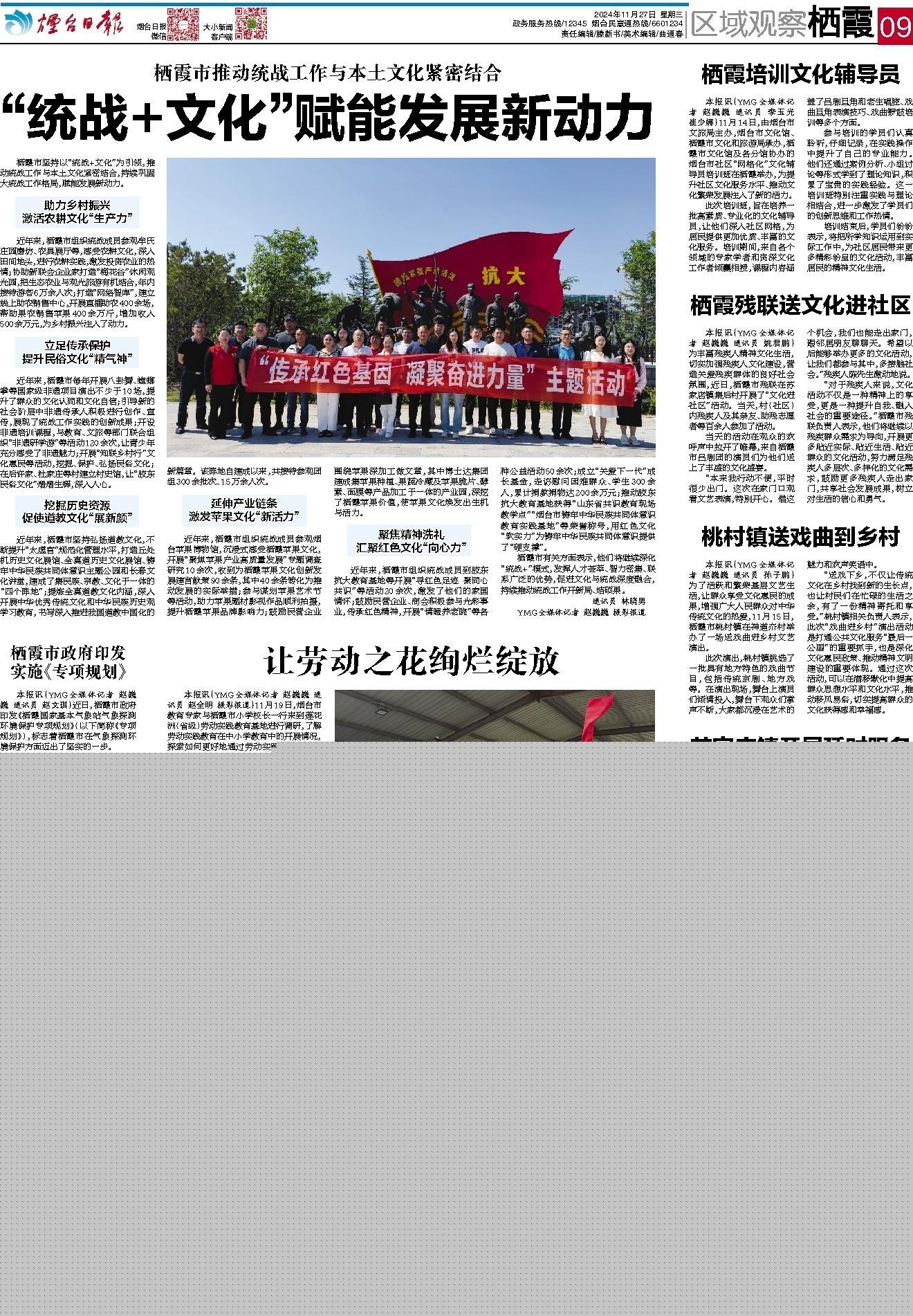 11月27日,《煙臺日報》第9版刊發《棲霞市政府印發實施<專項規劃>》。