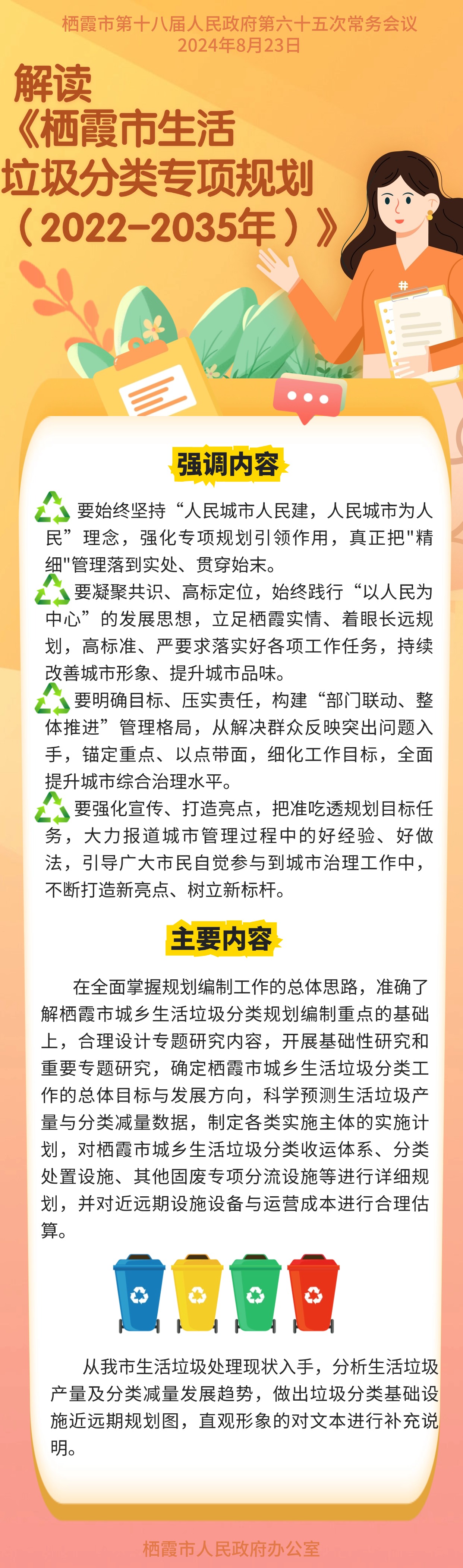 棲霞市第十八屆人民政府第六十五次常務會審議《棲霞市生活垃圾分類專項規劃(2022-2035年)》