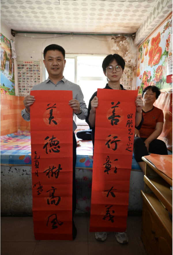 5月29日上午,因在趕考途中以“教科書式”急救成功挽救同學生命而受到全國廣泛關注的棲霞籍小伙姜昭鵬,回到家鄉莊園街道后夼村。市委副書記、市長臧雷代表市委、市政府第一時間前往姜昭鵬家中走訪慰問,送上慰問金,并贈送由我市文藝家為姜昭鵬創作的專屬楹聯書法作品。宣傳部、教體局、莊園街道相關人員陪同。