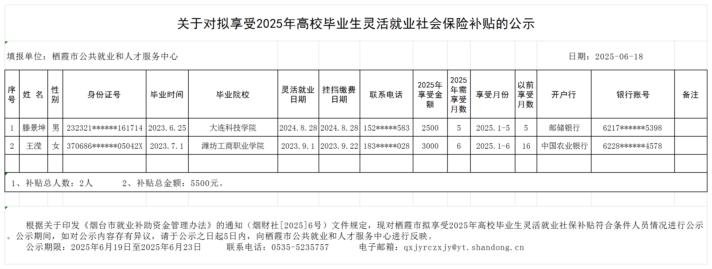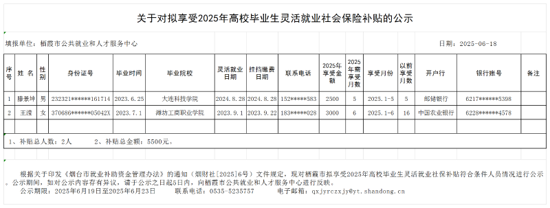 關于對擬享受2025年高校畢業(yè)生靈活就業(yè)社保補貼的公示