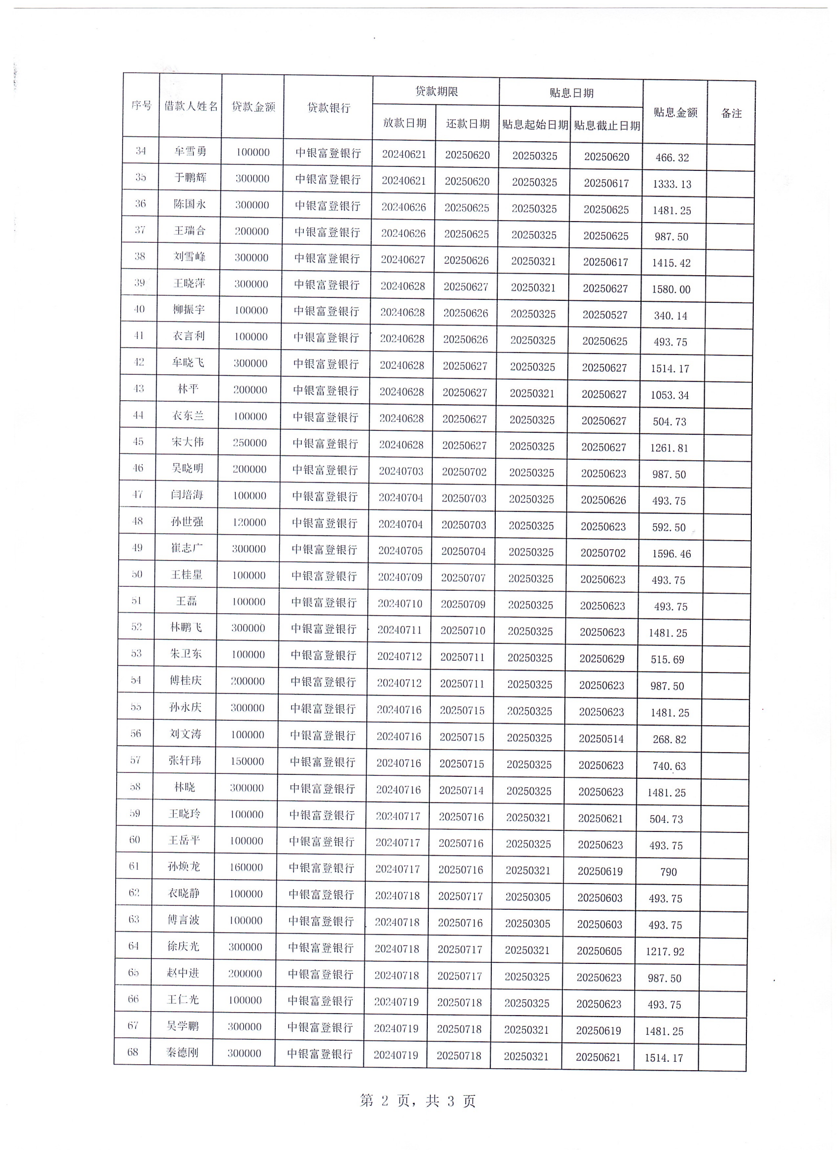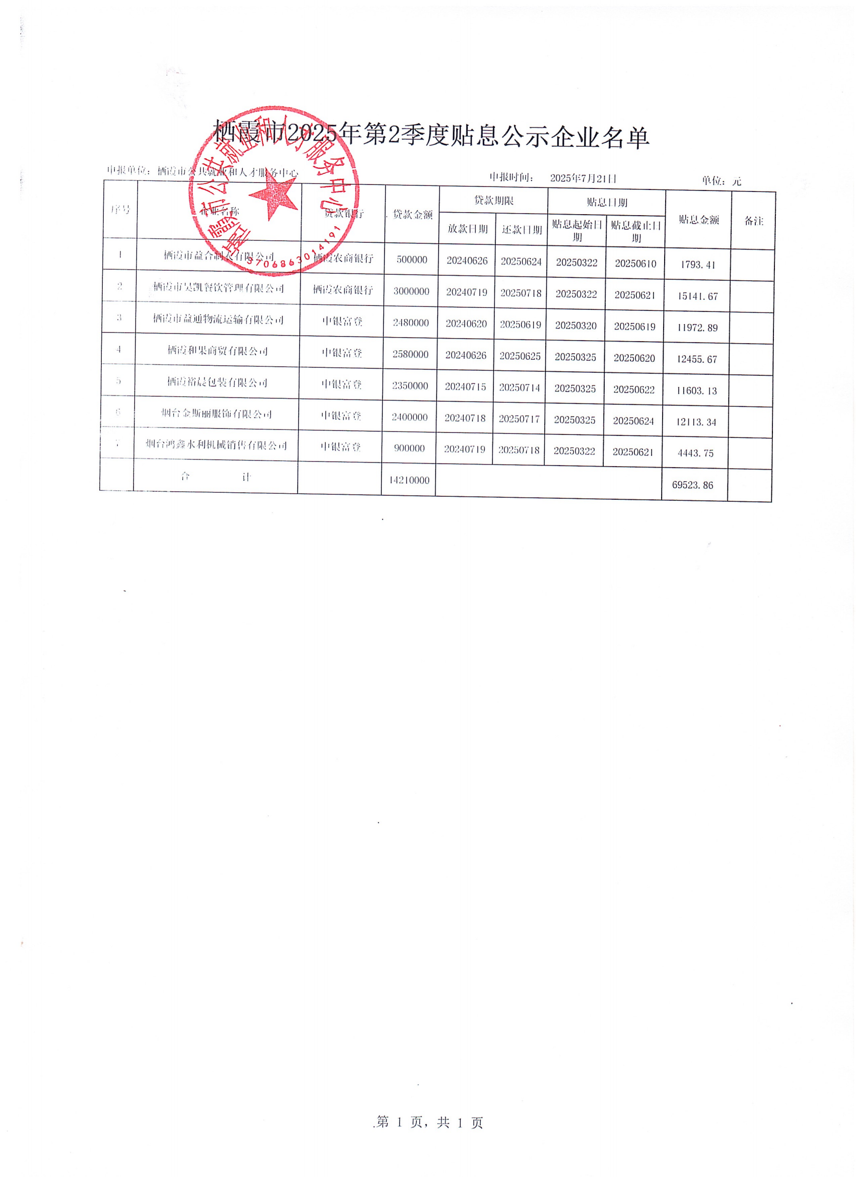 根據(jù)《關(guān)于轉(zhuǎn)發(fā)<進一步加大創(chuàng)業(yè)擔(dān)保貸款貼息力度全力支持重點群體創(chuàng)業(yè)就業(yè)的通知>》(煙財金〔2020〕25號)和(煙人社字〔2023〕111號)<煙臺市人力資源和社會保障局 煙臺市財政局 中國人民銀行煙臺市分行 關(guān)于印發(fā)《煙臺市創(chuàng)業(yè)擔(dān)保貸款實施辦法》的通知>的文件要求,經(jīng)審核,棲霞中銀富登銀行和棲霞農(nóng)商銀行兩家銀行共計76筆創(chuàng)業(yè)擔(dān)保貸款符合貼息條件,累計申請發(fā)放貼息金額142115.94元。現(xiàn)予以公示。(詳見附件)