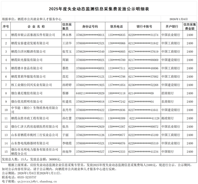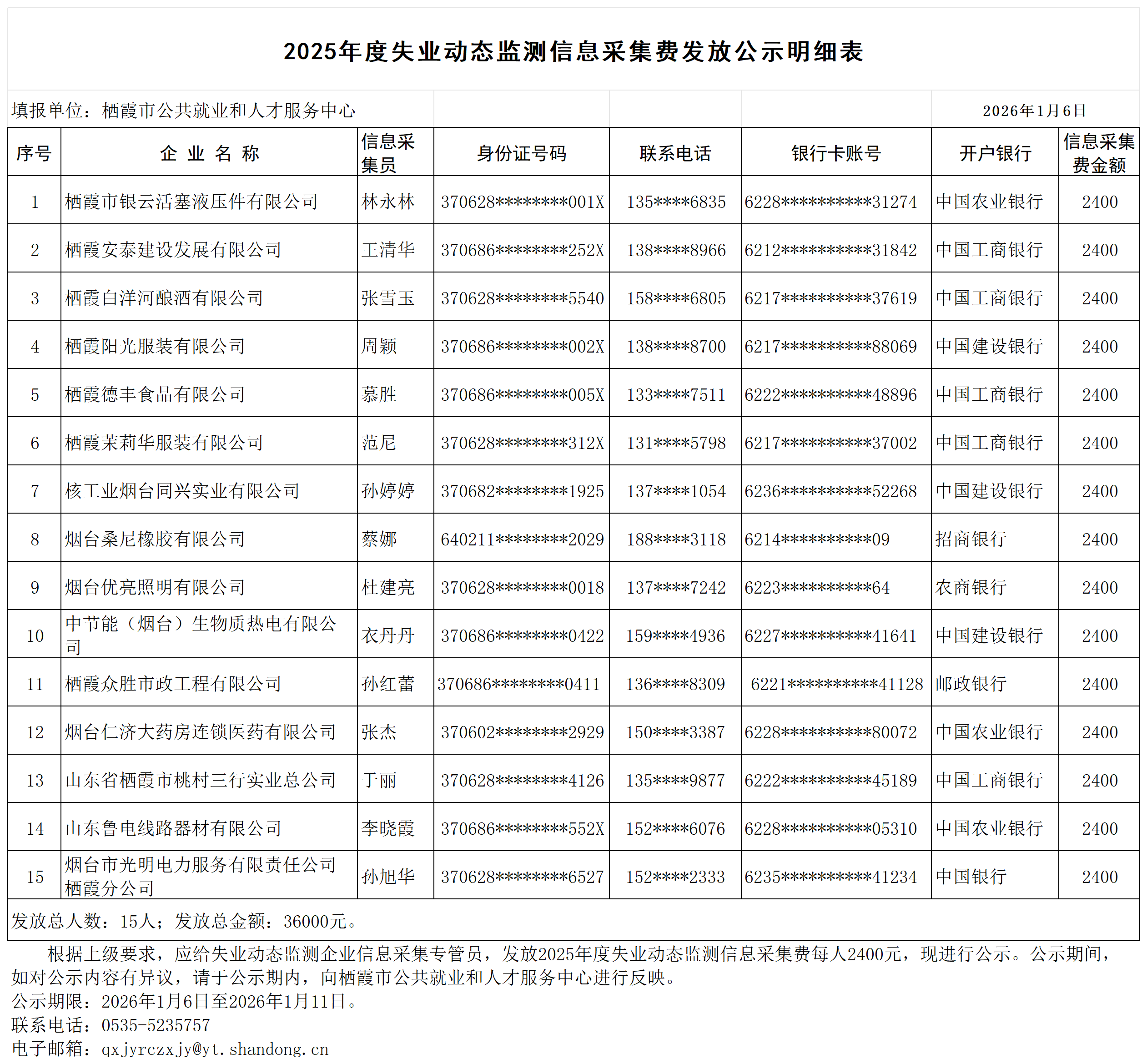 2025年度失業(yè)動態(tài)監(jiān)測信息采集費發(fā)放公示